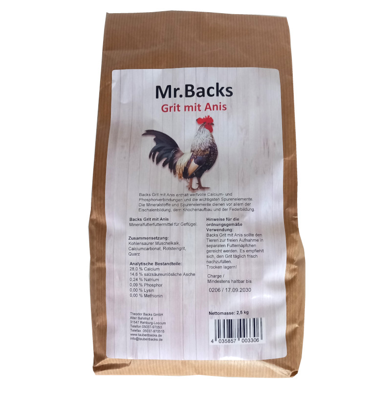 Hinweise für die ordnungsgemäße Verwendung: Backs Grit mit Anis sollte den Tieren zur freien Aufnahme in separaten Futternäpfchen gereicht werden. Es empfiehlt sich, den Grit täglich frisch nachzufüllen.